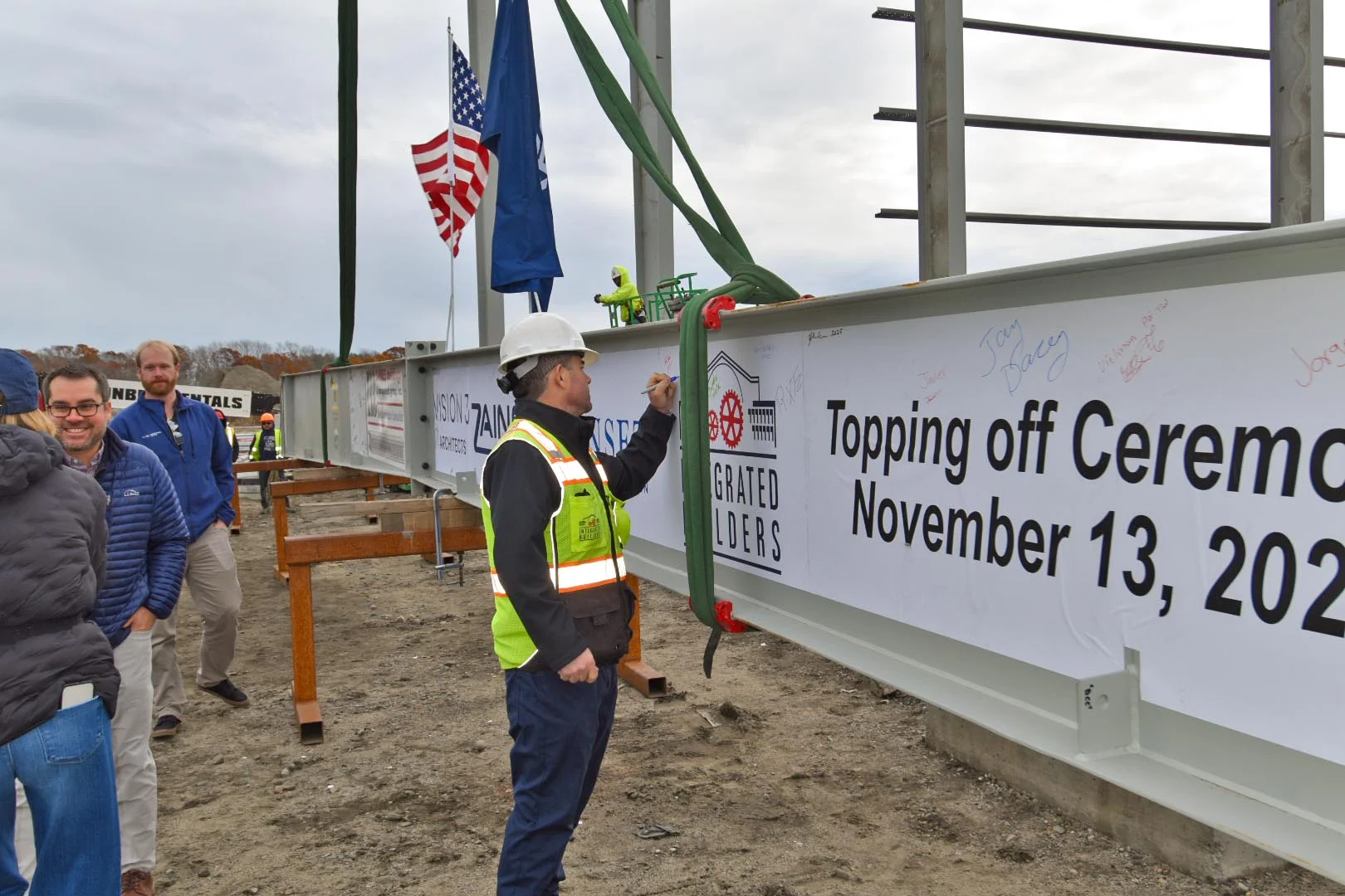 Thank you to everyone who joined the beam signing: Equity Industrial Partners, Quonset Development Corporation, Vision 3 Architects, and Zaino & Associates.