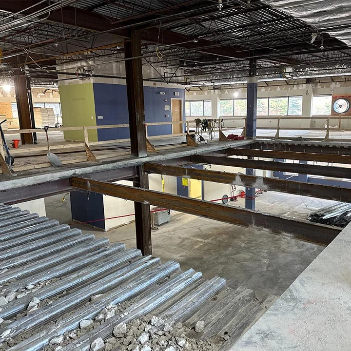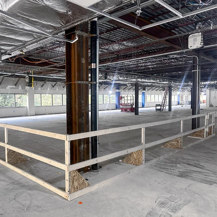 This transformation required major structural improvements, including removing 12,020 SF of second-floor slab within existing structural bays to improve adjacencies and unlock vertical 24-foot clear height required for specialized operations.
